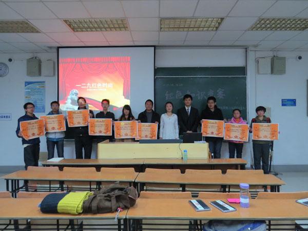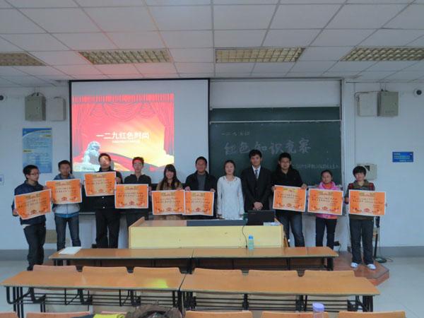 由必赢242net官网2013级团总支主办的“一二・九”红色知识竞赛于11月29日在将军路校区6101教室顺利举行。本次活动旨在通过知识竞赛的形式增强同学们对的红色革命知识的了解,更好地激发同学们学习红色历史知识的热情,号召大家不忘历史,学习过去,不断进步。