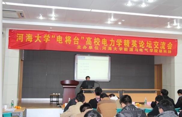 2013年12月2日,由河海大学、南京航空航天大学、东南大学、南京理工大学四校联合举办的“与学术为友,携创新同行”――第二届河海大学研究生“学海争峰”学术年会暨能电院首届“电将台”电力学精英论坛交流会在河海大学江宁校区博学楼511教室成功举行。本次活动由河海大学能源与电气学院主办并承办,我院研究生会协办,我院2013年度校科创新秀获得者王挺同学作为我院代表参与到此次交流活动中。河海大学能源与电气学院王宏华教授和王敏老师出席了此次论坛活动,河海大学、东南大学、南京理工大学的优秀研究生代表也参加了本次学术论坛。