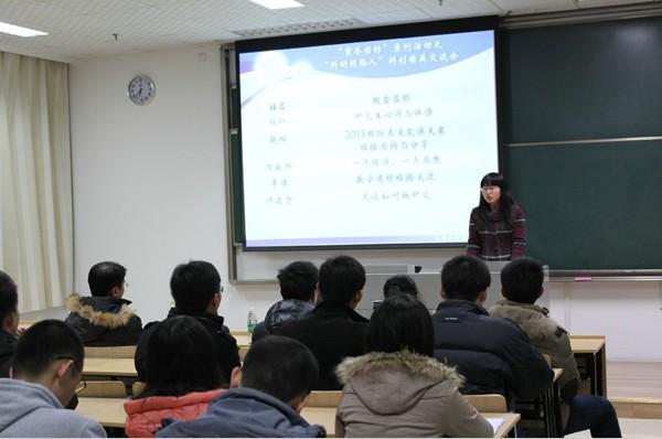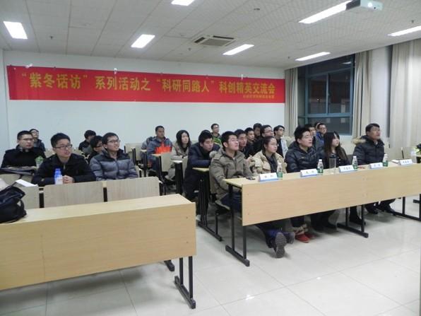 2013年12月10日晚6:30,由必赢242net官网研究生会主办的“紫冬话坊”系列活动之“科研同路人”科创精英交流会活动在A18楼218教室顺利举行。本次活动邀请到我院硕士研究生任仁、李洁、万骏炜、赵阳以及博士研究生许德智五位学术精英为到场同学们作报告,研究生辅导员刘斐文老师也莅临现场出席了本次活动。