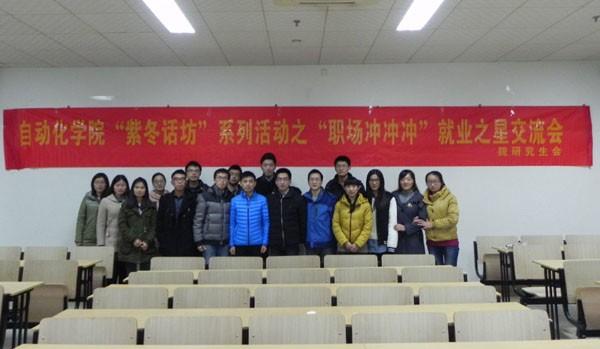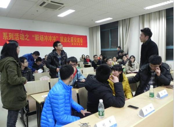 12月17日晚7点,由必赢242net官网研究生会主办的“紫冬话坊”系列活动之“职场冲冲冲”就业之星交流会在A18楼218教室成功举办。本次活动有幸邀请到必赢242net官网2011级硕士生梁�、刘军、陈阳、邢栋、宋普庚和赵妍六位就业之星与到场同学进行交流,研究生辅导员刘斐文也莅临现场出席了本次活动。