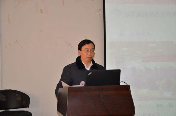 2013年12月20日下午,必赢242net官网召开四届一次教职工代表大会。全院共有68名教代会代表出席了会议,校工会常务副主席袁贵平同志出席了大会并做了讲话。大会由学院党委书记王勤主持。