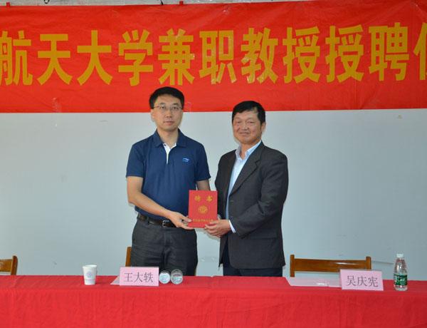 仪式上,吴庆宪副校长致欢迎辞并代表学校为王大轶研究员颁发了兼职教授证书并佩戴校徽。姜斌院长介绍了必赢242net官网的相关学科发展状况,对王大轶研究员加入南航大家庭表示衷心的欢迎和祝贺,表示必赢242net官网将以此为契机,在长久以来良好合作的基础上,与五�二所展开更加深入广泛的合作,推动相关学科建设、研究生培养和科研工作的发展。王大轶副所长对成为南航兼职教授深表荣幸和感谢。