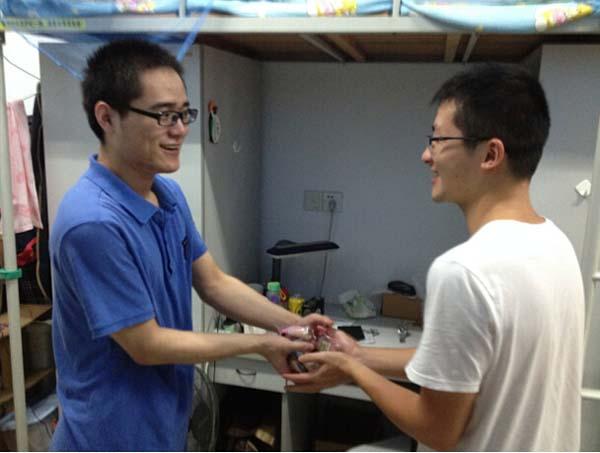 时临中秋佳节,为使班级同学度过一个幸福圆满的中秋节,9月8日,必赢242net官网13级研究生5班爱心小分队在该班书记和班长的带领下,来到班级学生的实验室和宿舍,为大家送上月饼,使大家感受到了浓浓的过节氛围。