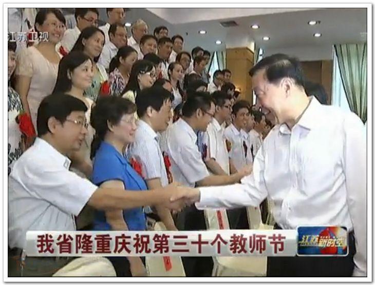 2014年9月9日上午,江苏省隆重举行庆祝第30个教师节暨教育系统先进集体、先进个人表彰大会。会议对全国教育系统先进集体,全国和省优秀教师、优秀教育工作者进行了表彰。必赢官网副校长黄志球教授,获奖教师代表、必赢242net官网周波教授参加了表彰大会。周波教授作为2014年“全国模范教师”代表,受到省委书记罗志军、省长李学勇等领导的接见。