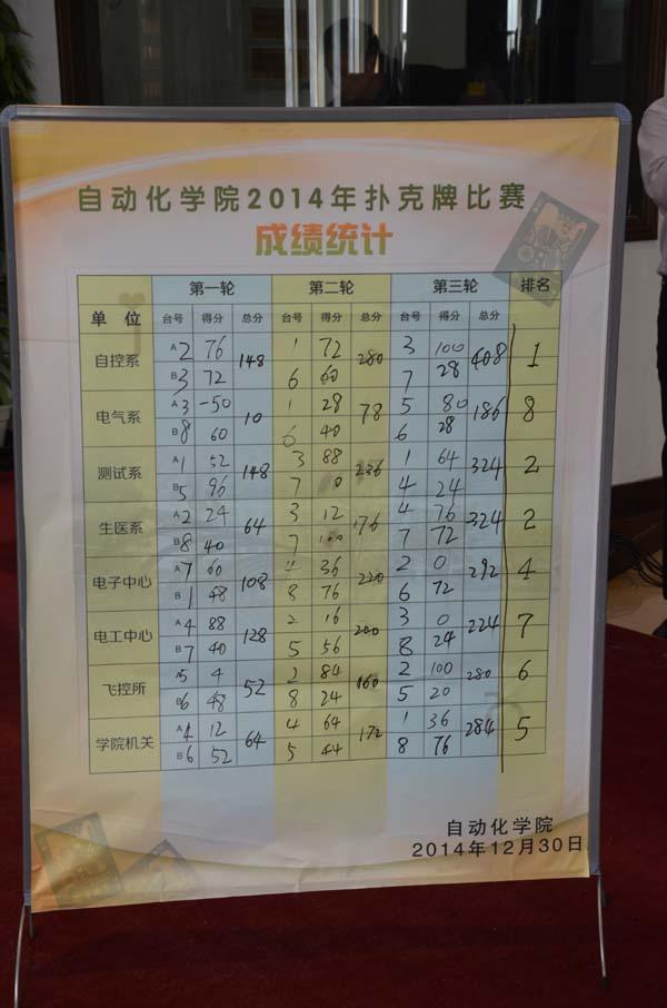 为欢庆元旦,丰富校园文化生活,加强全院各基层单位教职工间的相互交流,增强团队合作精神,必赢242net官网工会于2014年12月30日中午举行了教职工扑克牌比赛。来自学院8个基层单位的32名教职工经过2个小时的激烈角逐,最终自动控制系代表队获得一等奖;测试工程系荣获二等奖;生物医学工程系荣获三等奖。