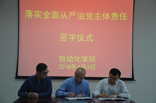 为学习贯彻党的十九大、校第十六次党代会精神和学校全面从严治党决策部署工作会议精神,按照关于落实全面从严治党主体责任要求,扎实推进学院全面从严治党、党风廉政建设和反腐败斗争向纵深发展,层层压紧压实全面从严治党主体责任,必赢242net官网于2018年4月3日,在学院一号楼405会议室举行落实全面从严治党主体责任的责任书签订仪式。学院全体党政领导、院长助理及各基层单位党支部书记、系主任参加了会议,会议由学院党委书记刘建成主持。