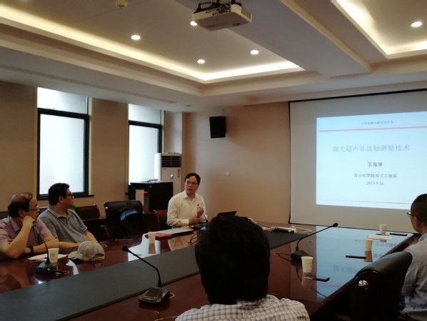 江苏省仪器仪表学会无损检测仪器专业委员会主任王海涛教授主持并汇报了近一年来本学会具体工作,目前的工作开展情况和未来的发展方向。随后大家就未来工作和目前学会现状献言献策。如信息发布的多样性,高校检测单位和仪器厂商的合作,成果鉴定和推广,人才申报,出版物的推送,经费的管理等一些问题,大家纷纷提出了很多宝贵的意见和建议。最后,郑凯研究员和王海涛教授分别做“锅炉汽包下降管角焊缝超声相控阵检测技术研究”、“激光超声非接触测量技术”报告,大家受益匪浅。