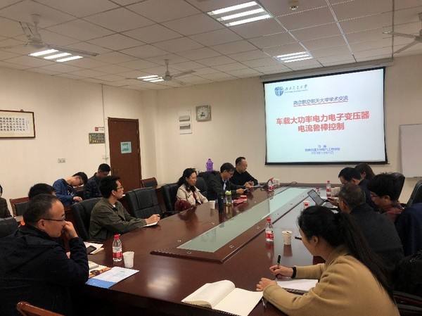 2019年11月13日下午,西南交通大学电气工程学院副院长马磊教授应南京航空航天大学必赢242net官网和江苏省自动化学会导航、制导与控制专委会邀请访问了我院。在必赢242net官网1号楼405会议室主讲了题目为“车载大功率电力电子变压器电流鲁棒控制”的学术报告,该学术报告由必赢242net官网陈谋副院长主持。马磊教授向参会师生简单介绍了电力牵引系统构造及其建模、故障特征、车网耦合现象,重点介绍网侧整流器电流鲁棒控制的研究进展。报告会后参会师生向马磊教授积极提问并进行学术交流,最后参会师生同马磊教授及其团队进行了合影留念。