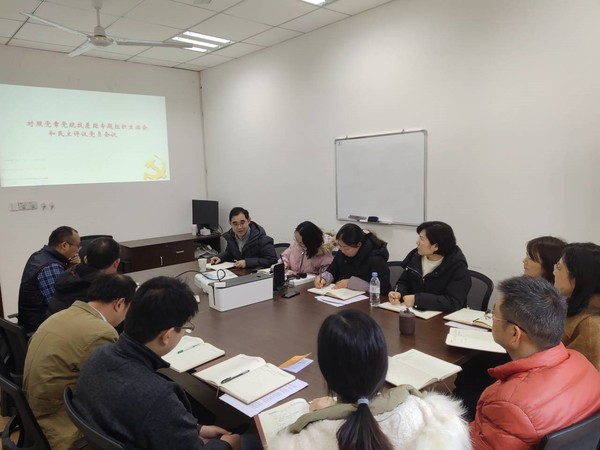 首先,由张跃副书记进行本次的主题教育讲话。张书记指出,认真召开组织生活会是主题教育的要求,更是思想深处的自省。每位教师党员都要以此次专题会议为契机,在思想剖析上深究,进一步提升思想认识;在整改落实上深入,坚持边查边改、即知即改。会议的第二部分由游霞进行支部工作情况汇报,内容分为两部分。第一部分为2018年度支部查摆问题及整改落实情况汇报。第二部分为2019年度支部工作计划完成情况,包括认真执行三会一课制度、积极开展党日活动等内容。接下来,每一位党员都紧紧围绕几个月来的“不忘初心、牢记使命”主题教育学习,对照党章、《中国共产党廉洁自律准则》、《关于新形势下党内政治生活的若干准则》、《中国共产党纪律处分条例》等要求,全面开展自我检查,自我剖析,认真总结和深刻反思,进行了各种原因方面的分析,积极开展批评和自我批评,并对自己发现的问题和他人提出的批评提出了具体的整改思路和措施。整个过程中,全体党员实事求是,找问题、找差距、明确方向、相互促进,起到了提升工作的作用。会议第四项为民主评议。全体与会人员按照实事求是的原则,对支部班子进行评议,对支部党员进行民主测评。