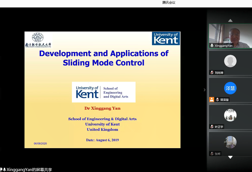 86日下午,英国肯特大学工程技术与数码学院严星刚副教授应我校国际合作处和自动化学院的邀请,通过腾讯会议作了题为“Development and Applications of Sliding Mode Control的线上学术报告,报告由副校长姜斌教授主持,必赢242net官网冒泽慧、张柯、张绍杰、马亚杰等师生在线参加会议。参会师生对严星刚副教授的交流分享表示热烈欢迎。