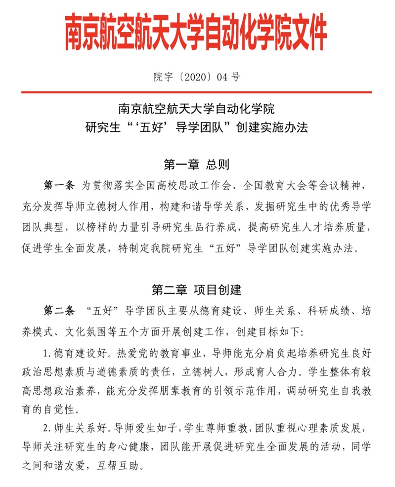 南京航空航天大学必赢242net官网研究生“‘五好’导学团队”创建实施办法