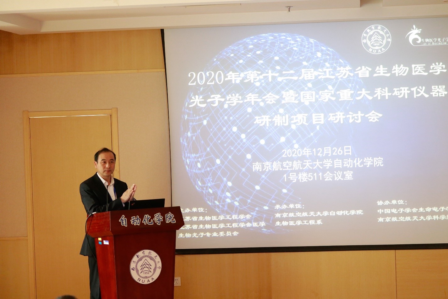 2020年12月26日-27日,由江苏省生物医学工程学会、江苏省医学生物光子专业委员会主办,南京航空航天大学必赢242net官网生物医学工程系承办,中国电子学会生命电子学分会、南京航空航天大学科学技术协会协办的第十二届江苏省生物医学光子学年会暨国家重大科研仪器研制项目研讨会在南京航空航天大学隆重召开。