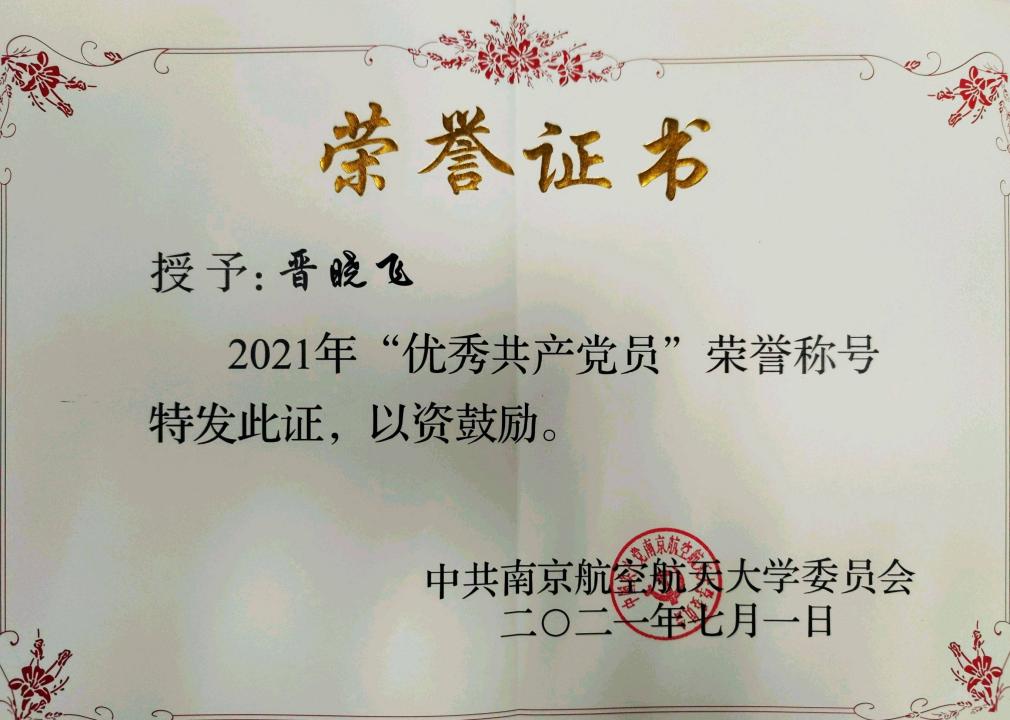 团队目前共有共产党员17人,其中教师党员3人,博士后党员3人,学生党员11人。自立项以来,团队不断加强党性修养,积极学习党史党章,在实验室布置党史学习墙。团队思想觉悟高,不断学习党和国家新思想、新政策,在科研之余经常组织师生共建党日活动,如参观大金山国防园等。团队定期组织观看《高山下的花环》、《横空出世》等红色电影,并由预备党员和积极分子等分享观影感悟,既能让大家在繁重的科研任务之外放松心情,又能学习老一辈革命家、科学家不怕流血牺牲、迎难而上的精神,号召团队师生不忘历史、警钟长鸣,不忘初心,科研报国。团队成员中多位同学获得院校级别荣誉,其中团队学生负责人晋晓飞博士生荣获2021年南京航空航天大学优秀党员,朱柔君硕士生荣获2021年必赢242net官网优秀党员。