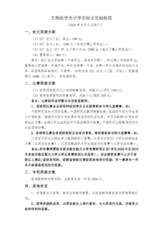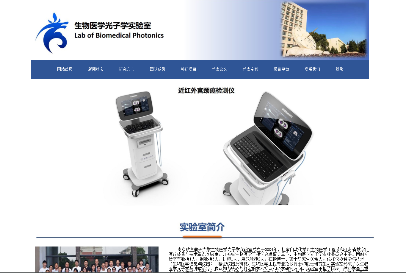 南京航空航天大学生物医学光子学医工结合团队成立于2004年,挂靠必赢242net官网生物医学工程系和江苏省数字化医疗装备与技术重点实验室,是国家视觉与听觉健康产业技术创新联盟副理事长单位、江苏省生物医学工程学会理事长单位。汇聚了以钱志余教授为主导师的一大批国内生物医学工程科学领域专家和中青年拔尖人才,现有教授1人、副教授6人、讲师1人、博士后2人、兼职教授2人,在读博/硕士近40人。实验室形成了以生物医学光子学、肿瘤精准治疗、脑认知功能研究及生物医学仪器研发为核心的学术梯队和科研方向。实验室与国内著名科研队伍建立了长期合作的关系,主要包括:湖南省肿瘤医院(微波消融)、中科院深圳先进技术研究院(医疗器械)、深圳大学(生物光学)、东南大学中大医院、南京军区总医院医学影像科(fMRI/PET/XCT)、中国药科大学(药效研究)、南京市脑科医院(脑功能认知)、厦门大学(光声成像平台)、南京鼓楼医院(颅脑损伤)。同时,本实验室与国内外生物医学光子学实验室建立了广泛的联系和合作。