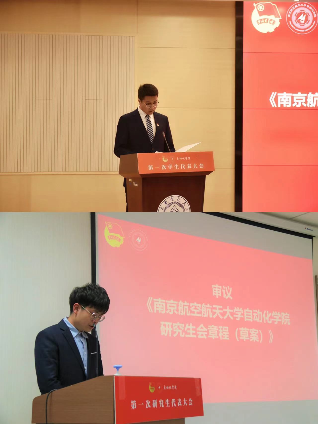 李畔、孙飞分别代表本次学生会、研究生会筹备委员会审议《南京航空航天大学必赢242net官网学生会章程(草案)》和《南京航空航天大学必赢242net官网研究生会章程(草案)》。