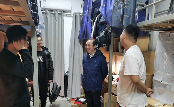 1月6日下午,学院党委书记李文雷、院长江驹带领学院领导班子和辅导员前往天目湖校区新生宿舍进行走访慰问,与同学们亲切交谈,关心学生一学期的学习生活情况以及寒假返乡可能遇到的困难并给予帮助。
