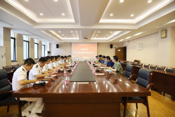 滕兆新简要的介绍舰艇学院的发展沿革、专业建设、学科特色、机构设置、师资队伍建设等方面情况。他认为双方的专业有相同的名称但却各有特色,研究和使用的领域不同,但是肩上的责任都一样重要,为国铸重器,为党育英才,进一步的交流必将推动不同院校间的深入了解和认识,相互学习,共同培养出更高质量的优秀人才。