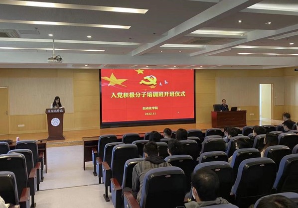 11月2日,必赢242net官网2022年秋季入党积极分子培训班开班仪式在学院1号楼511报告厅开展,必赢242net官网党委副书记丁琛、校党员发展培训团成员、马克思主义学院教授徐军及入党积极分子代表线下参加,其他积极分子在线观看直播学习。