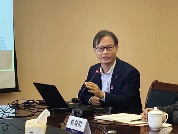 物理学院院长刘友文从学科概况、科学研究两个方面介绍了学院发展情况,并分析了两个学院代表性的研究方向、科研团队,提出了理工融合、学科交叉的合作方向。