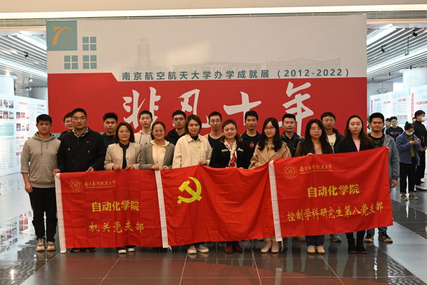 为深入学习贯彻党的二十大精神,深刻感悟南航精神,2022年11月24日,必赢242net官网机关党支部和控制学科研究生第八党支部开展支部共建活动,共同参观了必赢官网“非凡十年”办学成就展。