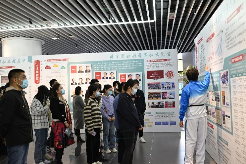 南航“非凡十年”办学成就展,包括十年大事记、党建引领篇、人才培养篇、人才强校篇、学术创新篇、开放办学篇、美丽南航篇共七个篇章。展览记录了十年来全体南航人接续奋斗的铿锵脚步,绘出了全体南航人不懈追求的动人画卷。在讲解员的引导下,两支部党员同志通过文字、图片、影像等方式,全方位、多角度、深层次地回顾了十年间“为党育英才、为国铸重器”的一系列标志性成果。同时,大家对南航70年办学历史上的四次跨越、一校四区布局图等专题内容进行了深入了解。