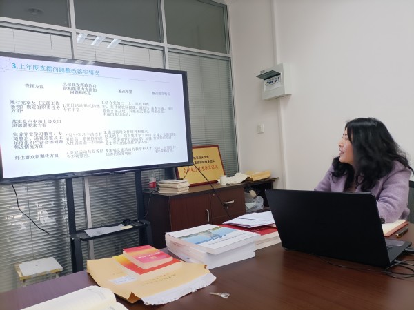姚睿同志介绍了本支部党员通过专题学习认真学习领会党的二十大精神,以及通过谈心谈话联系实际查摆问题的情况,并代表支部委员会向全体党员汇报了2022年度支部工作完成情况和2021年度查摆问题整改落实情况,通报了本年度查摆问题情况和详细整改举措。