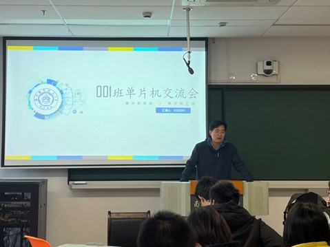 接着,由同学们做寒假科创学习的情况汇报交流,交流会现场气氛热烈。同学们纷纷走上讲台演示讲解自己所做的作品,有闪烁的流水灯、显示数字的数码管和播放着音乐的蜂鸣器……感知机器语言描述的现实世界。班长发表学习体会,认为学习单片机最重要的就是不畏首畏尾、敢于尝试,并认真钻研、多听多想多动手。