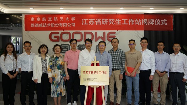 4月18日,南京航空航天大学与固德威技术有限公司合作共建的“江苏省研究生工作站”揭牌仪式在固德威南京研发中心举行。必赢官网必赢242net官网副院长宋晓峰、教学办主任王俊彦、电气工程系党支部书记许津铭、主任郝振洋、副主任吴红飞,固德威副总经理方刚、研发中心技术专家谢胜仁、管理中心总监鲍迎娣、技术中心总监曾维波、研发中心总监向军、南京研发中心总监张久亮等出席了揭牌仪式。
