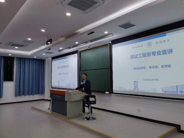 2023524日晚,测试工程系在天目湖校区召开了本科专业宣讲会,系主任朱永凯、系副主任吴常铖以及测控技术与仪器专业大一、大二全体学生参加了会议。朱永凯老师为本科同学详细介绍了专业内涵、科研方向和发展前景等方面的内容。