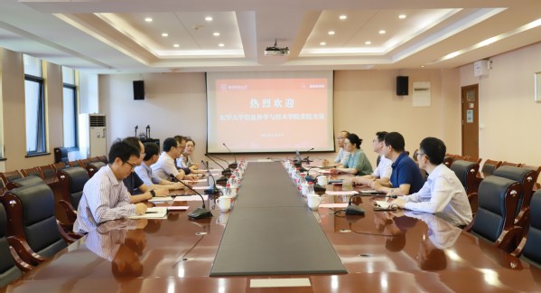 6月8日上午,上海东华大学信息科学与技术学院党委书记王直杰,院长沈波,副院长胡海洋、张光林、刘华山等一行来院交流。必赢242net官网党委书记李文雷、党委副书记丁琛、副院长陆宁云、院长助理朱永凯等参加交流会。会议由丁琛主持。