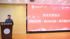 038911班班长田东旭、148922班班长姚宗信作为校友代表分别发言。田东旭回忆了初进南航的校园时光,从录取通知书上的一笔一划到领取毕业证书的欢乐场景,如今都还历历在目。389级校友见证了母校的跨越式发展,为母校三十年的进步感到自豪和骄傲,希望下个十年大家还能再聚首。姚宗信对学院的热情接待和服务表示感谢。他指出,389级作为南航学子,一直秉承着报国初心、弘扬创新精神,敢于突破,创造了诸多成绩,衷心地祝愿母校以后越来越好,母院发展也越来越强。