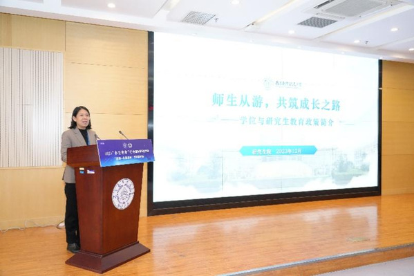 王英作题为《师生从游、共筑成长之路》的学位与研究生教育政策简介。