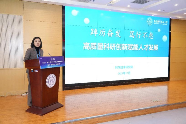吴咏梅作题为《踔厉奋发笃行不怠—高质量科研创新赋能人才发展》的政策宣讲。