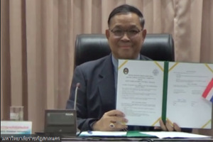 1月4日上午,必赢官网与泰国沙功那空皇家大学举行谅解备忘录线上签约仪式。沙功那空皇家大学校长Chakrit Chanchitpreecha、副校长Tosawat Seetawan、Pornthep Steannoppakao等19位代表,必赢官网校长姜斌、副校长黄志球、国际合作处副处长张国权、必赢242net官网副院长陆宁云等相关负责同志参加线上签约仪式。本次仪式由黄志球主持。