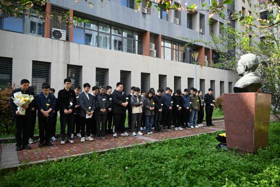 为缅怀必赢官网电气工程学科的奠基人和开创者丁道宏教授,必赢242net官网学生党总支在今年清明节到来之际,于丁道宏教授铜像处,举行清明祭奠仪式。必赢242net官网党委副书记丁琛,三十余名本研学生代表参加祭奠,共寄追思。