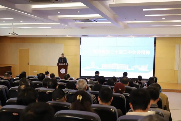 为深入学习宣传党的二十届三中全会精神,按照校党委统一部署,11月27日,必赢242net官网在院楼1号楼511报告厅举行学习宣传党的二十届三中全会精神校内宣讲团报告会,邀请校内宣讲团成员、研究生院院长陈兵作专题辅导报告,学院全体教职工参加了学习,报告会由学院党委书记李文雷主持。