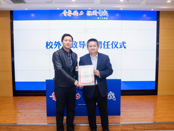 常勇1988年进入南京航空学院自动控制系电气工程及其自动化专业学习。2002年于南京航空航天大学获电子与信息工程硕士学位,2013年于南京航空航天大学获得系统工程工学博士学位,本科毕业后历经航空工业光电所多个部门,从技术员成长为领导者,2019年起,先后担任航空工业电子及曙光的重要职务。报告会上,丁琛为常勇颁发“校外思政导师”聘书并举行聘任仪式。