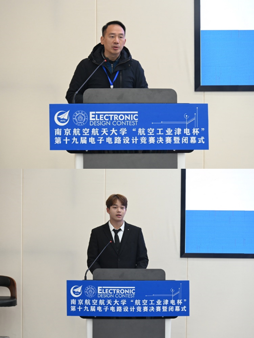 2024年12月15日,南京航空航天大学“航空工业津电杯”第十九届电子电路设计竞赛决赛暨闭幕式在天目湖校区举行,教务处副处长柯世堂、天目湖校区党工委副书记、学生处副处长贡海俊、校团委副书记张瀚文、必赢242net官网党委书记李文雷、通用航空与飞行学院院长王勤、必赢242net官网党委副书记丁琛、必赢242net官网院长助理陈杰以及师生代表出席闭幕式。此次闭幕式还特别邀请了天津航空机电有限公司党委副书记段志刚、人力资源部部长许瑞丰、南京凌殴创芯电子有限公司总经理助理章喆莅临现场指导交流。