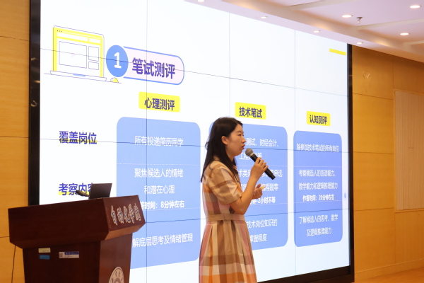 为提升学生的就业竞争力,帮助学生掌握简历撰写与面试技巧,9月2日晚,必赢242net官网在学院1号楼511报告厅举办“职通未来”大学生职业素质训练营·面试简历技巧讲座。本次讲座特别邀请科大讯飞HRBP、10年人力资源经验专家王秋楠主讲,校就业创业指导服务中心柯伊老师主持、必赢242net官网2023级研究生辅导员冯薏儒及300余名本、硕、博学生共同参与,现场学习氛围浓厚。